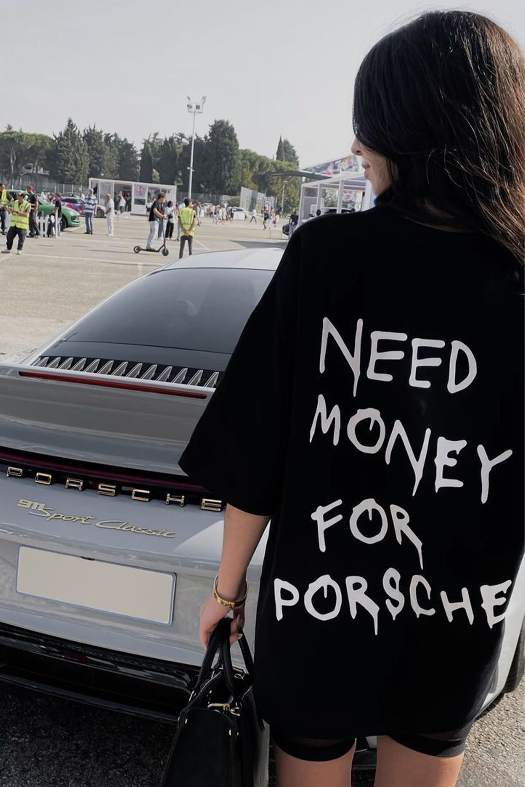 Need Money For Porsche Oversized Black T-Shirt for Women