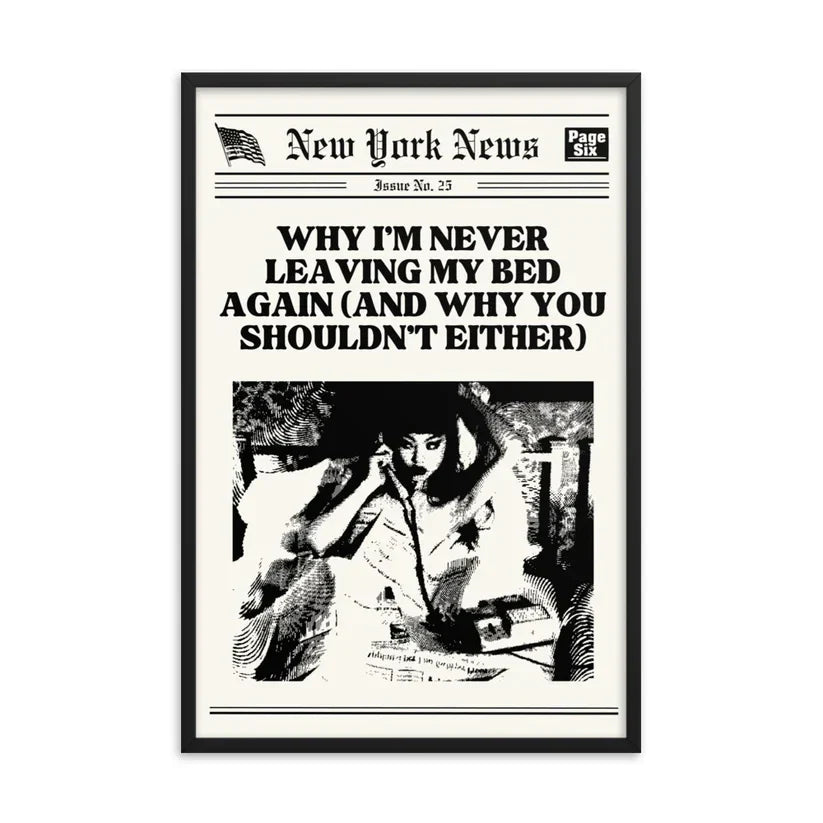 Get cozy with the *Never Leaving My Bed* poster! Perfect for creating a laid-back vibe, this wall art from Zyra Drip adds a touch of comfort to any room.